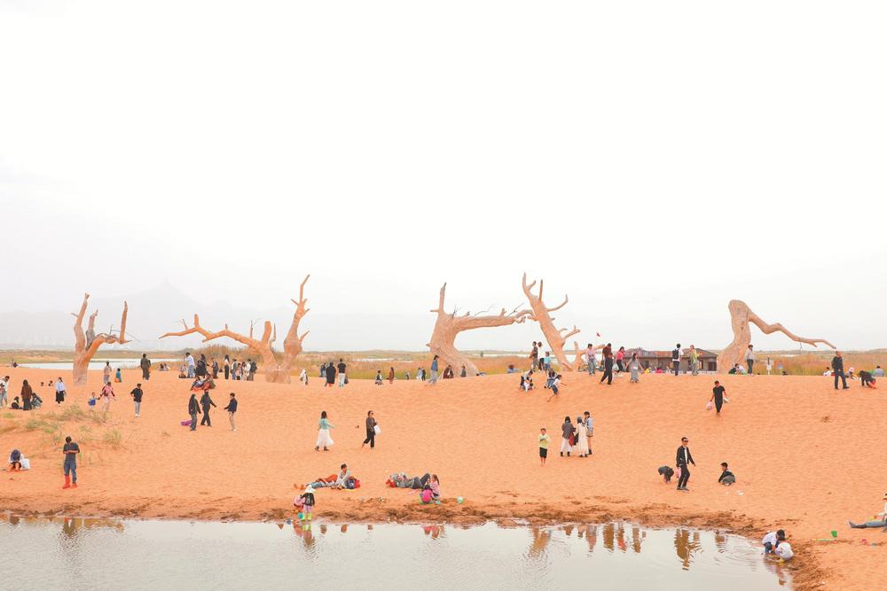 2020年,電影《烏?!烽_拍,讓這座城市的名字第一次與國內(nèi)知名電影出品公司和制作團隊緊密相連。影片以人性與欲望為主題,上映后斬獲近900萬票房,而片中烏海獨特的風(fēng)光更讓觀影者津津樂道。在導(dǎo)演周子陽眼中,烏海是一個視覺氣質(zhì)集中的地方,大山、大湖、大沙漠齊備,沙海相融、城湖相連的城市風(fēng)貌,自帶一種超現(xiàn)實的“魔幻”感,恰好契合了影片的創(chuàng)作構(gòu)思。影片中推動劇情發(fā)展的“沙漠月亮”場景,更是一躍成為烏海的網(wǎng)紅打卡點,城市、湖泊、高山、明月與巨大的樹干、白色帳篷交織在一起,構(gòu)成了海市蜃樓般的夢幻景觀。