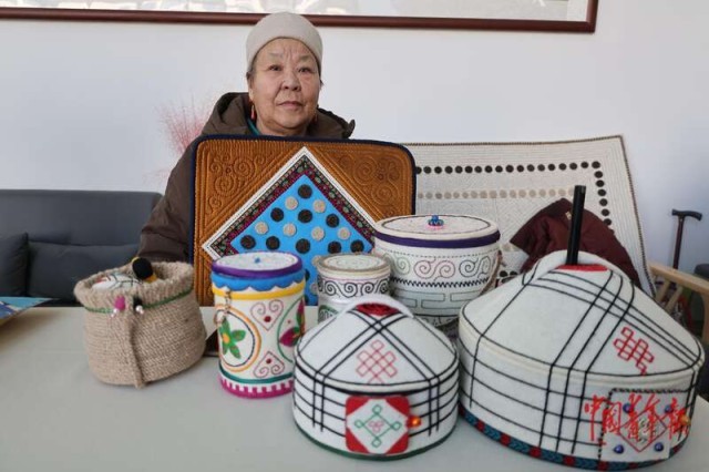 1月30日,蘇尼特右旗非遺年貨現場的蘇尼特氈秀作品。