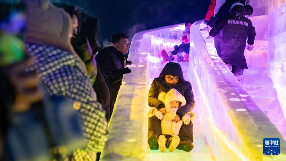 人們?cè)诤艉秃铺氐谖鍖脷g樂冰雪節(jié)上游玩(2025年12月31日攝)。